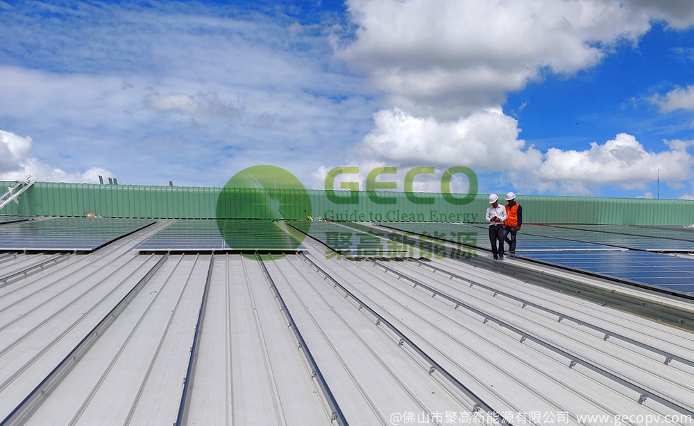 ▲ 聚高越南2MW彩钢瓦屋顶支架项目案例